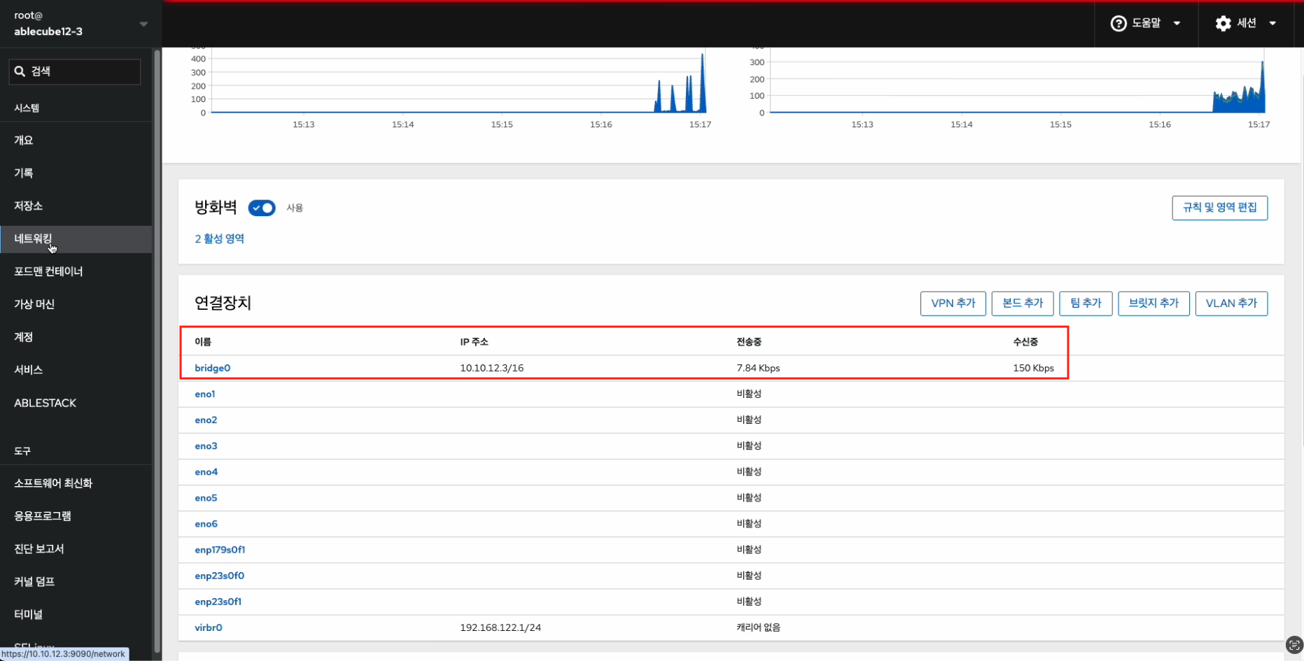 idx 호스트 명 호스트 IP 1 ablecube12-1 10.10.12.1 2 ablecube12-2 10.10.12.2 3 ablecube12-3 10.10.12.3 -