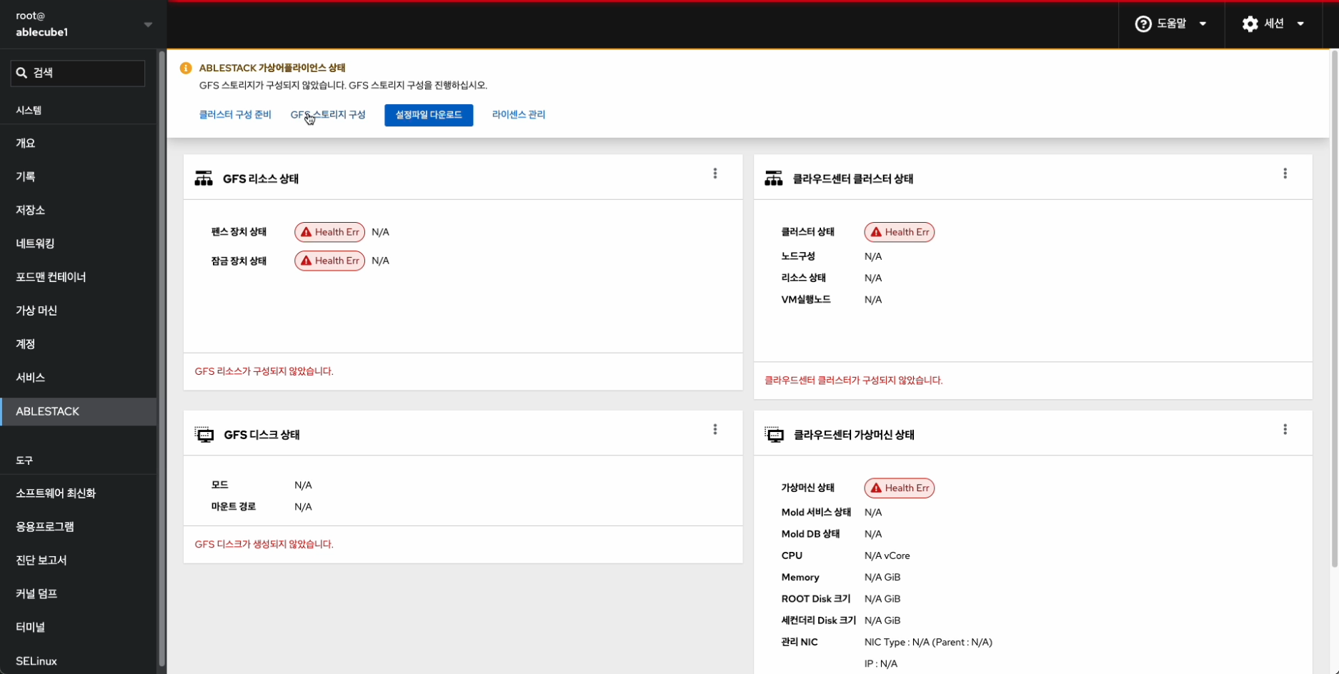 - 왼쪽 ABLESTACK 메뉴 클릭시 보이는 화면입니다.