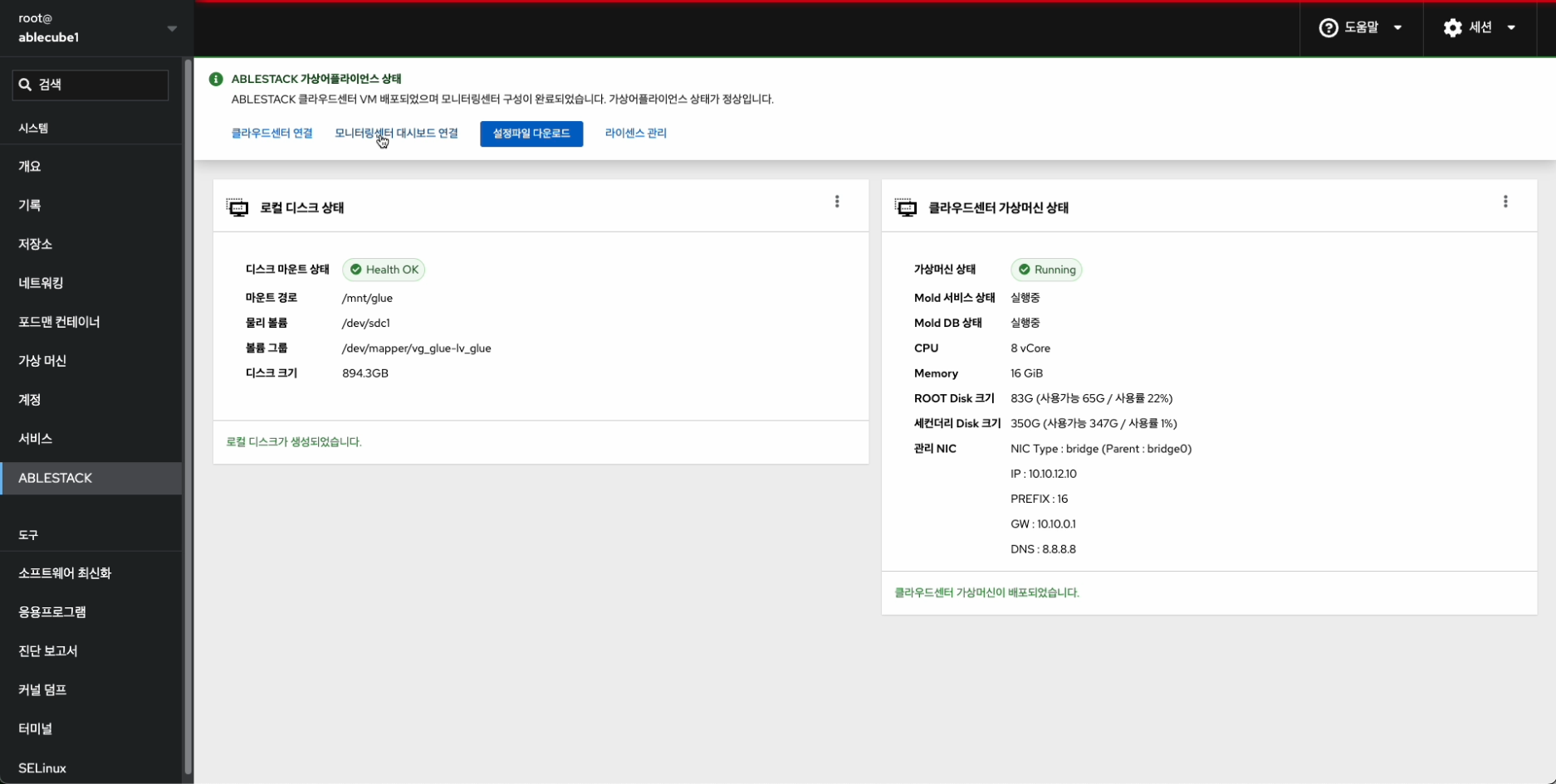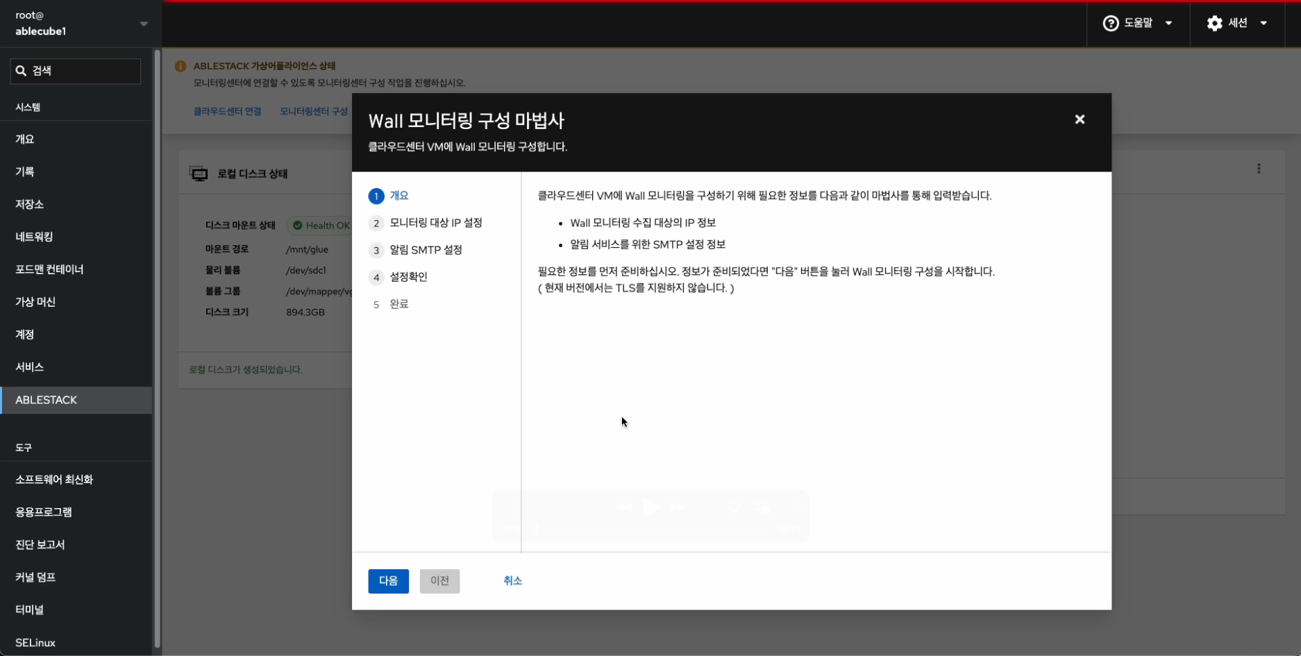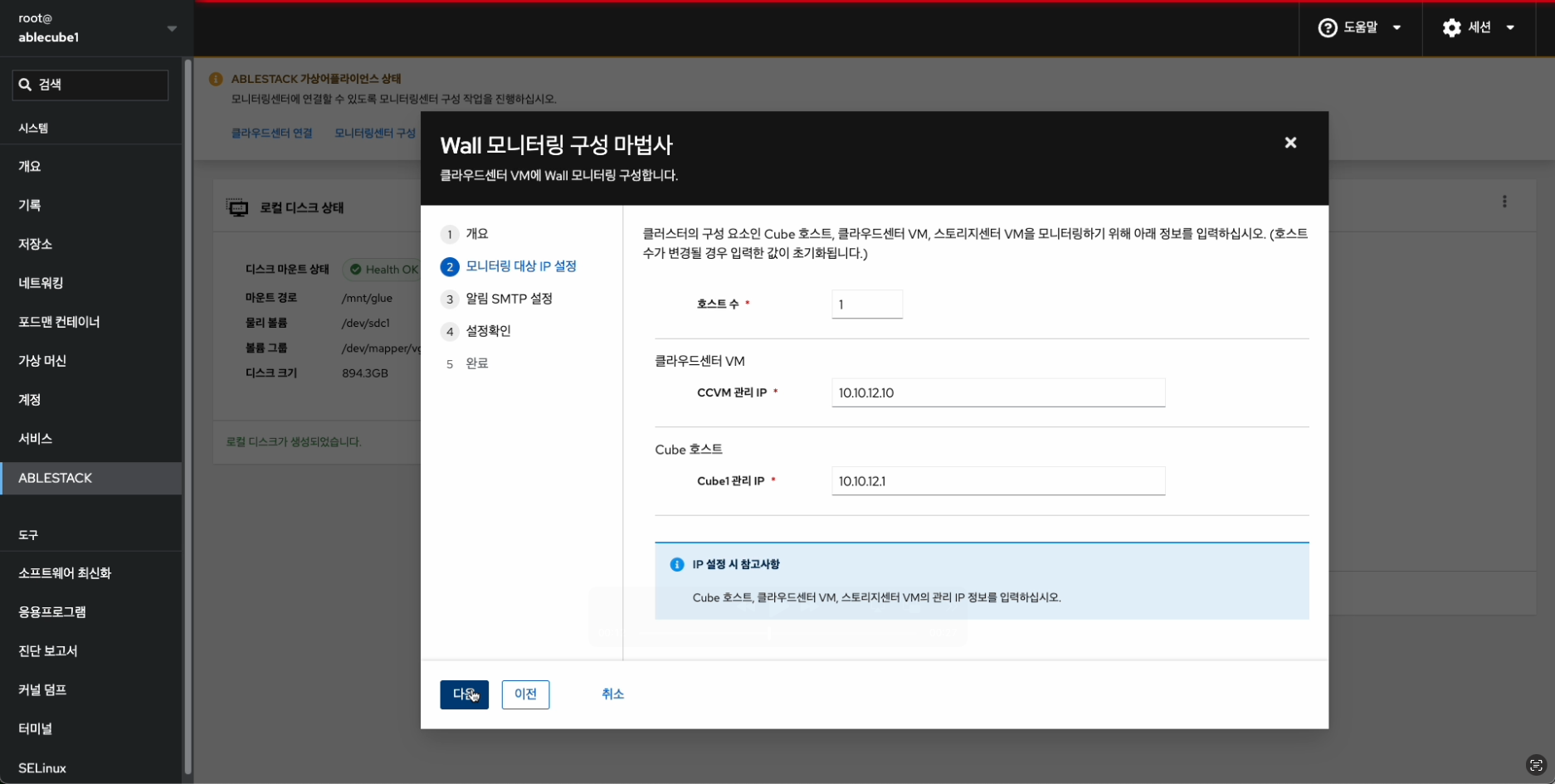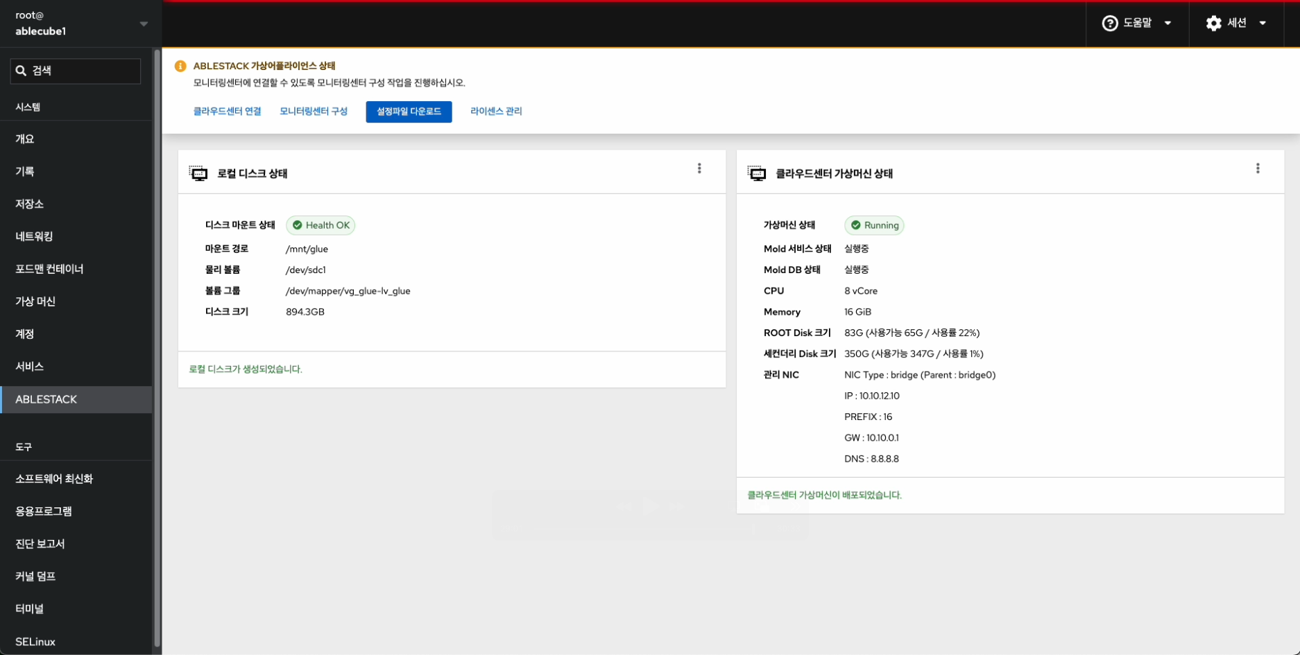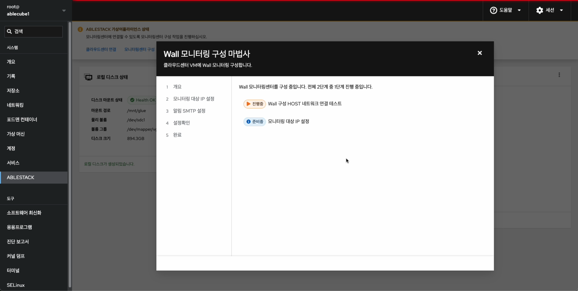 ABLESTACK STANDALONE Wall 설치 진행 가이드 입니다. ABLESTACK STANDALONE Cube 의 웹콘솔을 이용하여 진행이 되며 웹 접속 IP는 별도의 표시를 하지 않고 진행됩니다. 기존에 구성된 IP 정보에 맞게 웹콘솔을 접속 하시면 됩니다.