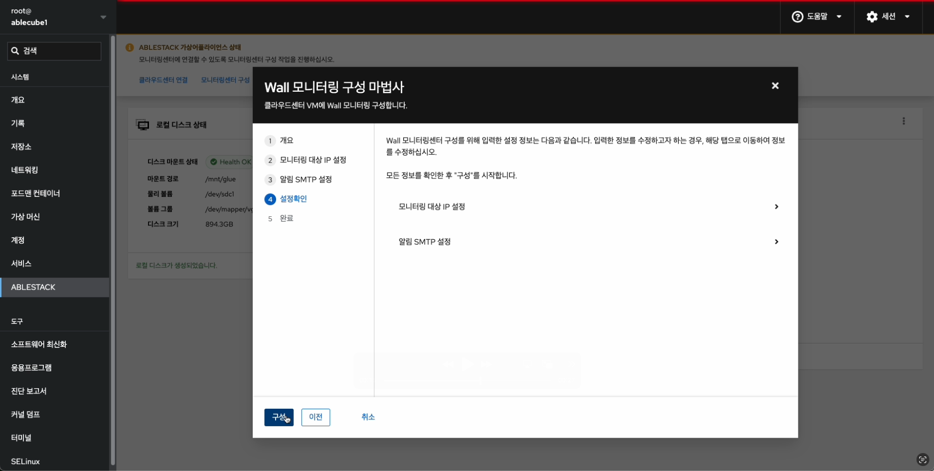- 실행 버튼을 클릭하여 모니터링센터 구성을 진행합니다.